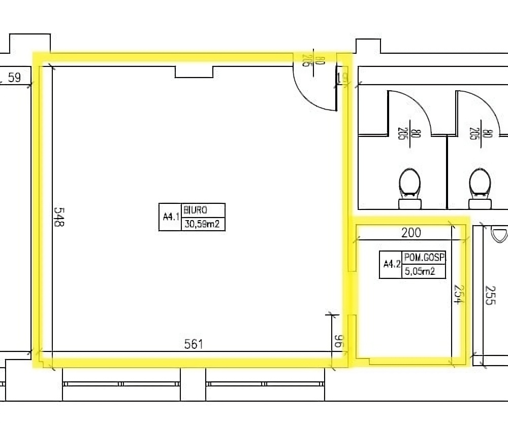 - jasnego, dużego pomieszczenia biurowego (30,59 m²),